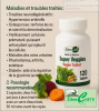 COMPOSITION: Super polyvitaminé riche de plus de 170 nutriments. Il contient des enzymes digestives ; riche en fer et en chlorophylle. Il est un complément alimentaire parfait avec une abondante source d'antioxydant, de conutriments, de vitamines, de minéraux. Super Veggie est un moyen facile de combler l'écart nutritionnel créé par les préférences personnelles et la disponibilité saisonnière. Puissant anti-oxydant. Il est formulé pour améliorer l'endurance.